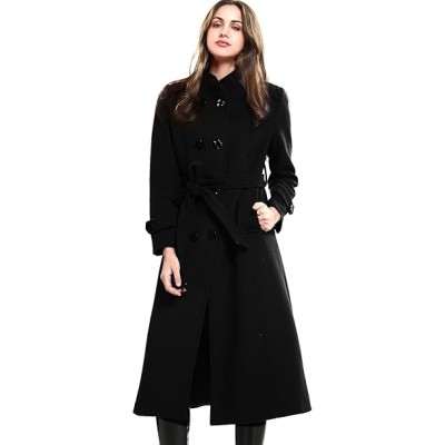 Escalier Women's Wool Trench Coat Winter Double-Breasted Jacket with Belts